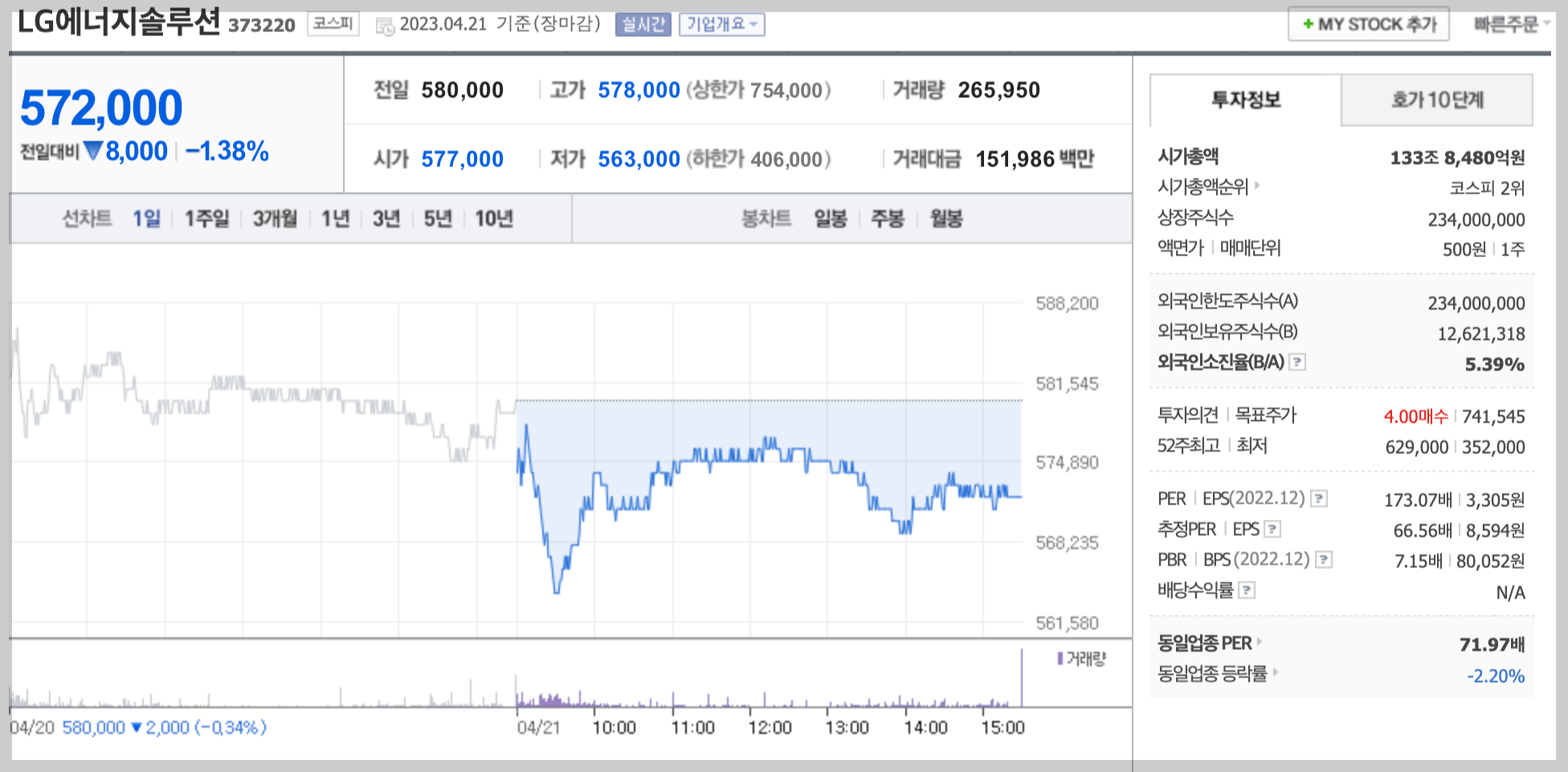 LG 에너지솔루션 입니다. 현재 코스피 기준 시가총액 2위 기업입니다.